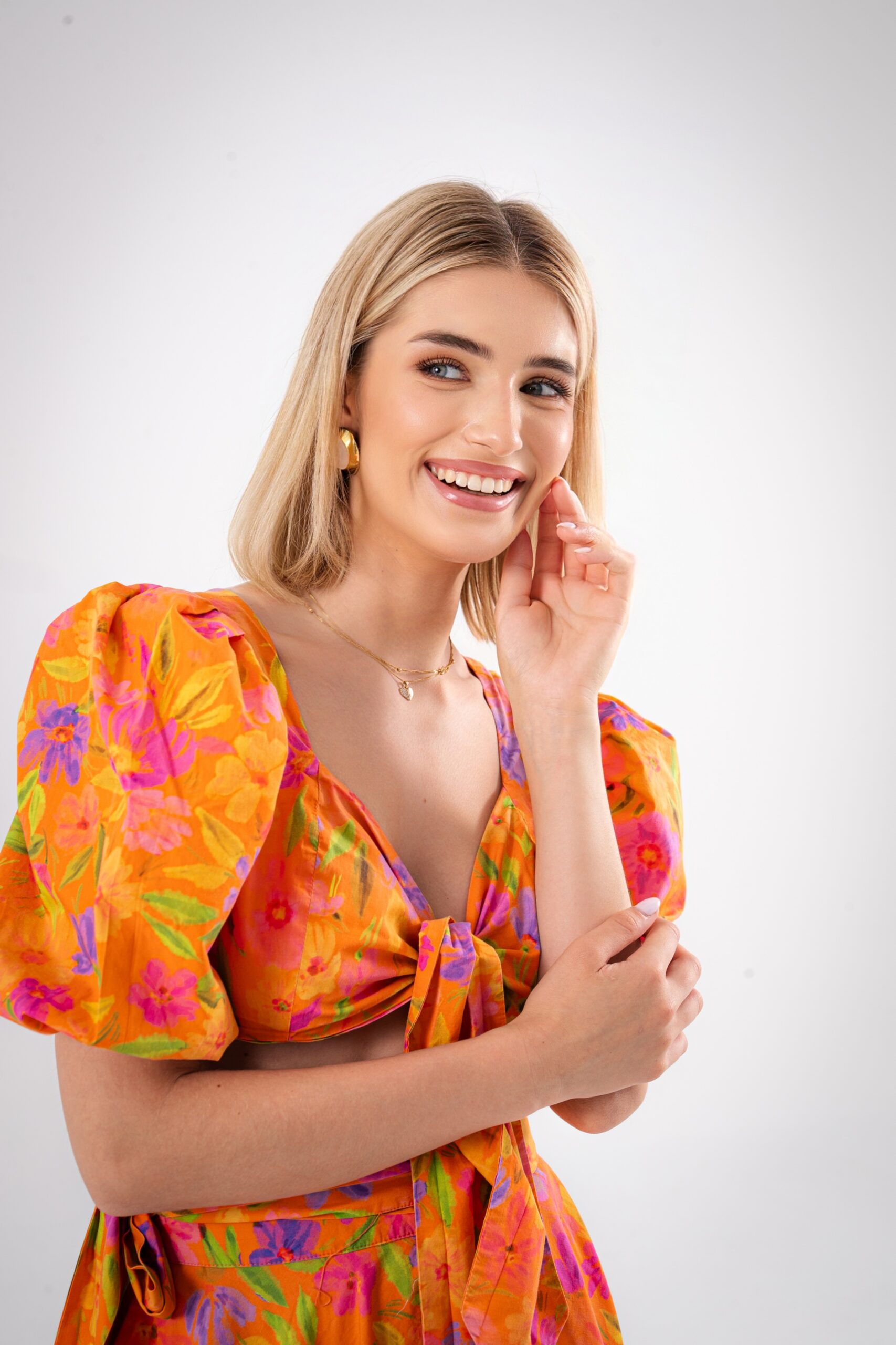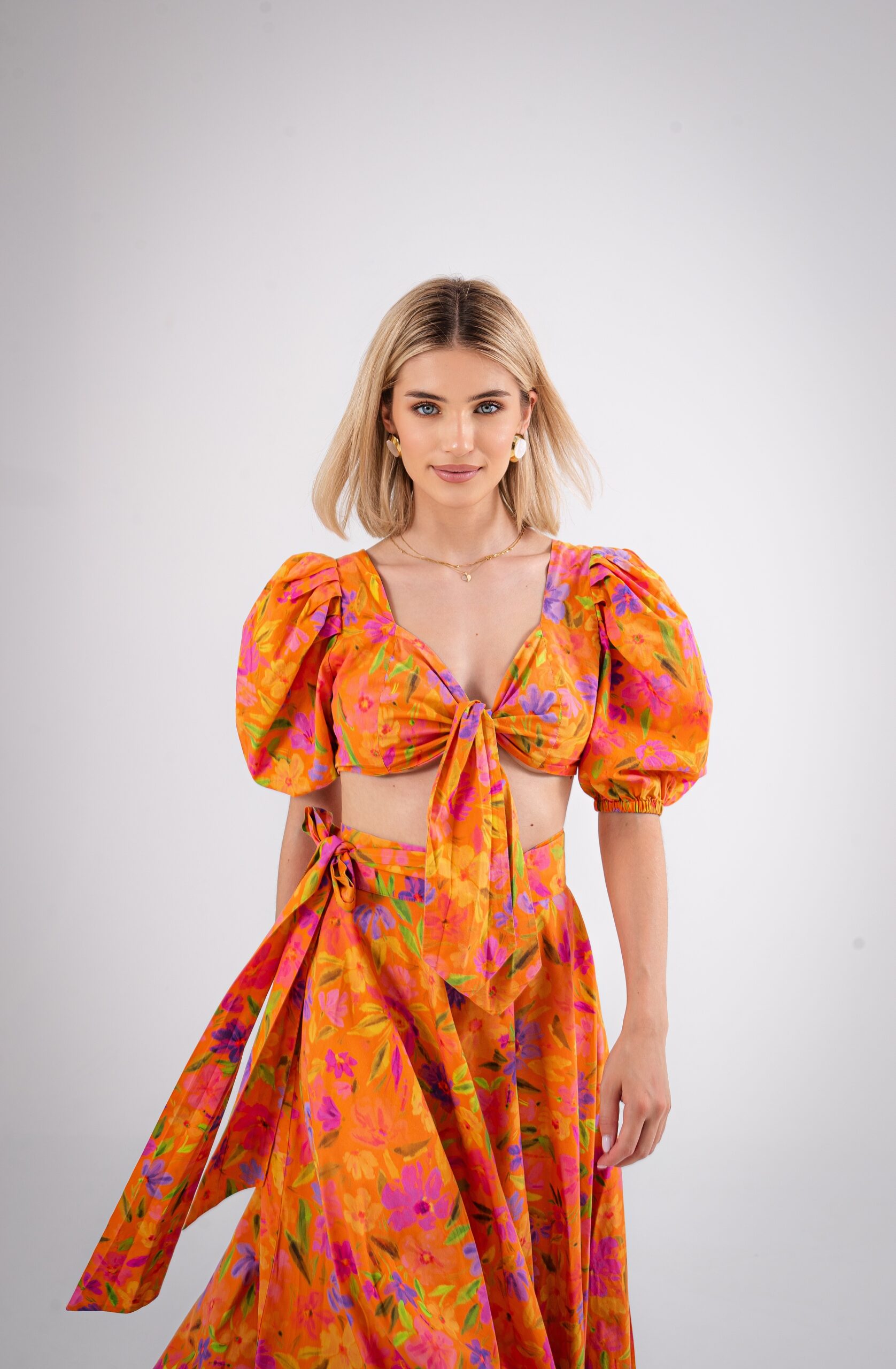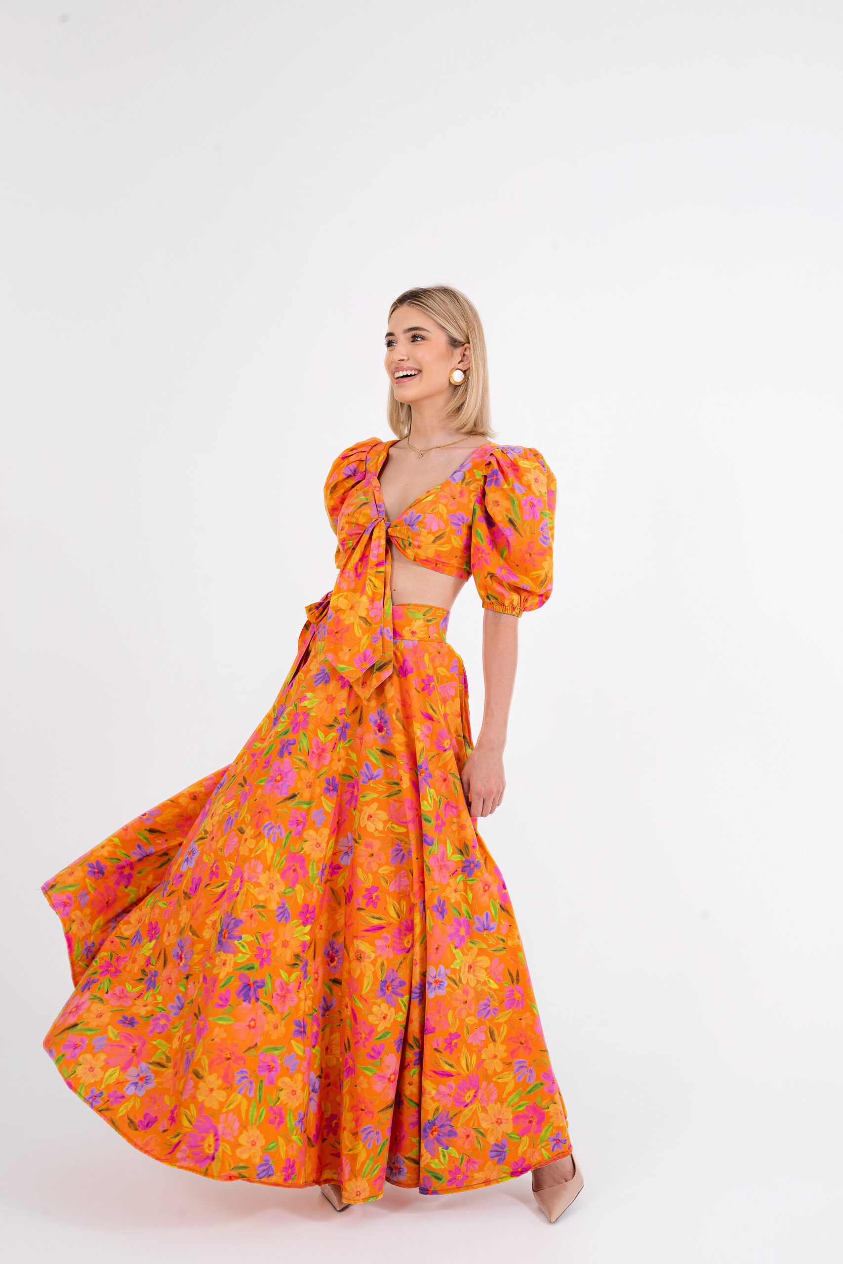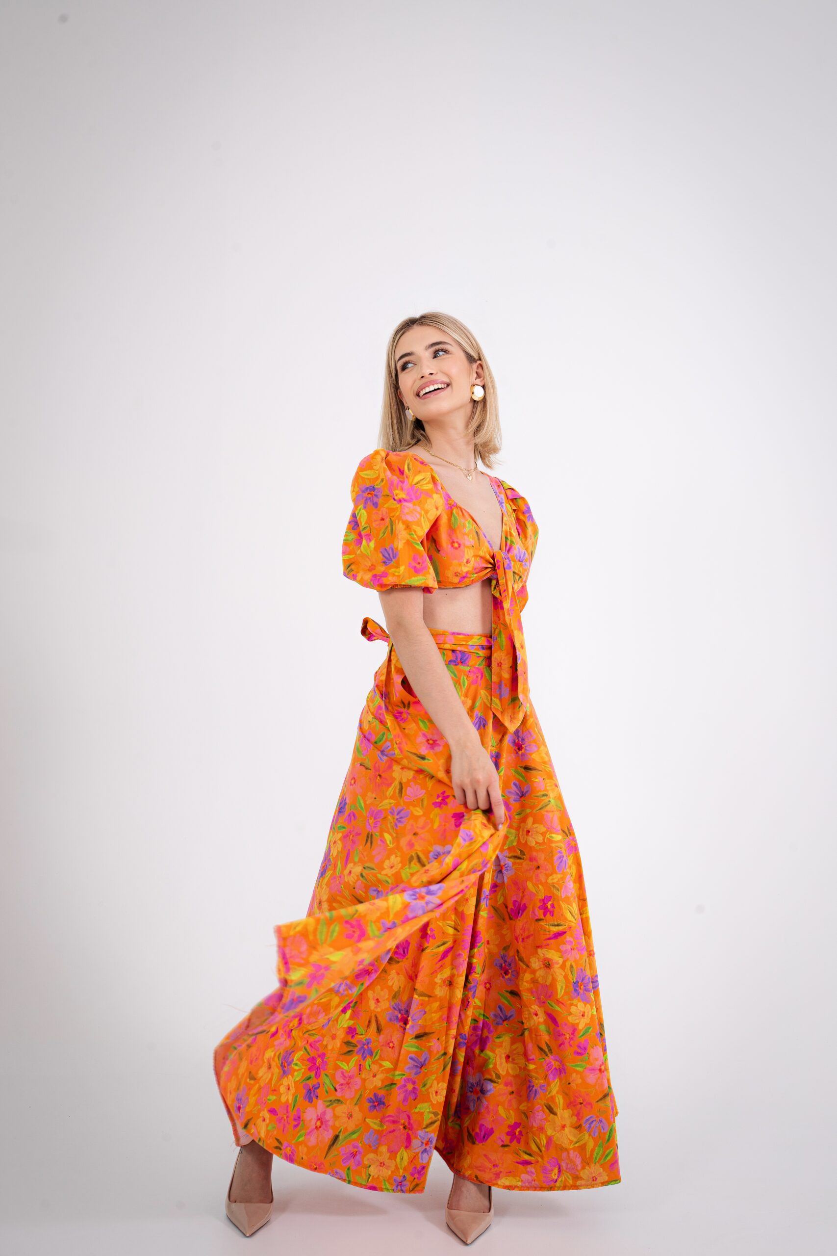 Głównym elementem tego zestawu jest wiązana koszula w różnokolorowe kwiaty, które zachwycają swoją różnorodnością i intensywnością kolorów oraz długa, efektowna spódnica maxi. Set Barcelona to idealne rozwiązanie dla osób, które chcą wprowadzić do swojej szafy kolory w eleganckim stylu. Zestaw Barcelona wyróżnia się nie tylko swoim urokiem, ale również jakością i trwałością wykonania, dzięki czemu będziesz mogła cieszyć się nim przez długi czas.